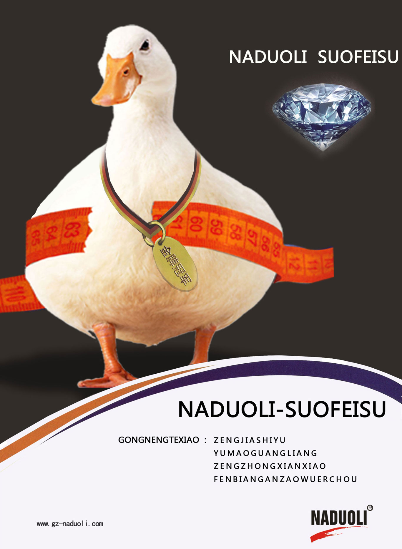 鸭只后期育肥及改善外观,出栏前7-10天使用。